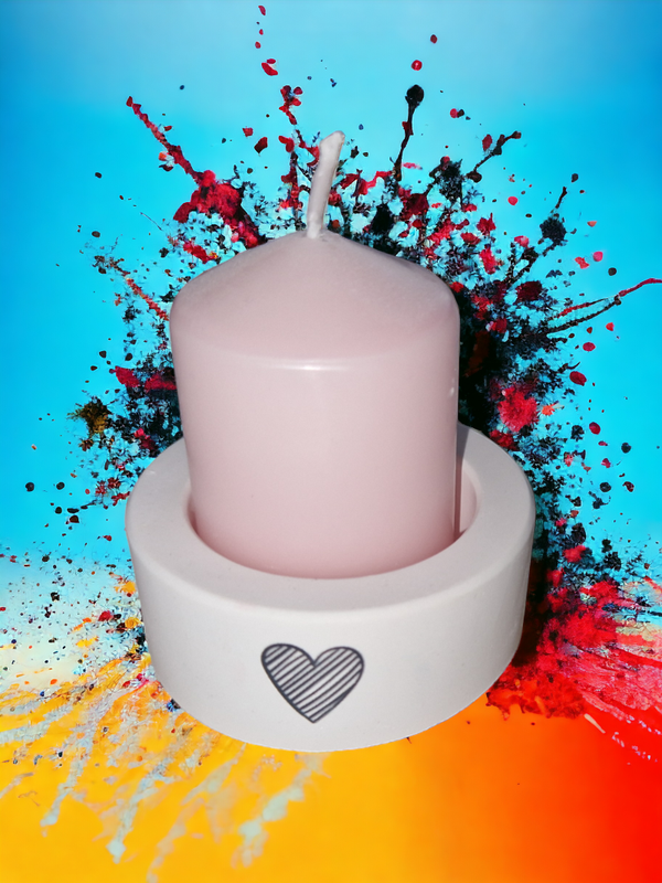 Kerze mit Kerzenständer aus Keraflott auf Holzbrettchen