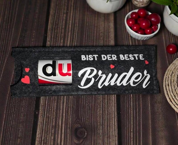 Filztasche für Schokoriegel, Aufdruck: Beste(r) Schwester, Tante, Oma, Opa, Papa, Mama